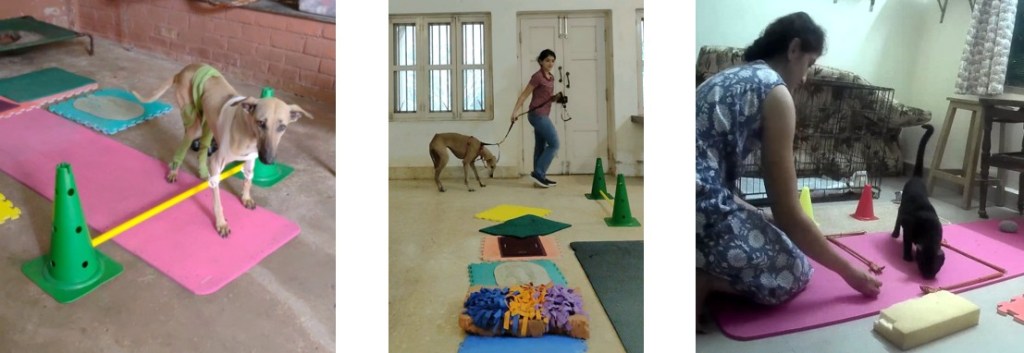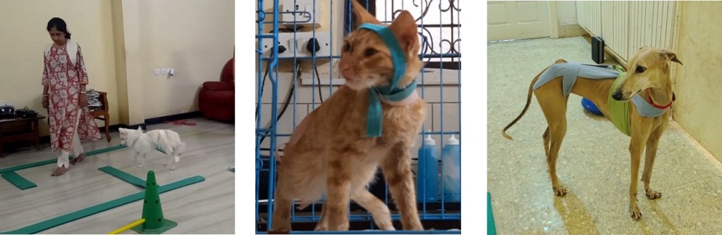 In this work, some of the equipment used with companion animals include Body wraps that serve to gently bring back spatial awareness to the body by influencing the nervous system, and the TTouch Harmony Harness & Leash system along with the TTouch Connector which encourages stress-free walking without the dog pulling on the leash or exerting excessive strain on the back and shoulders.